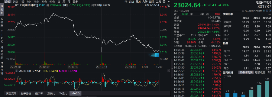 此后,申万电池指数连续3个交易日下跌,14日收盘跌超4%。