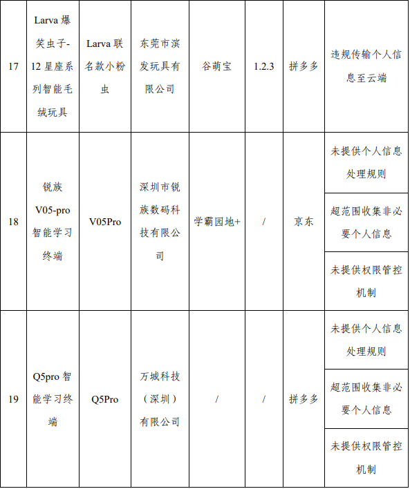 “黑科技儿童电话手表”、Larva 联名款智能毛绒玩具和智能学习终端等儿童接触度高的产品也因违规传输个人信息至云端、未提供权限管制机制等问题“榜上有名”,此类风险或将直接威胁未成年人信息安全。