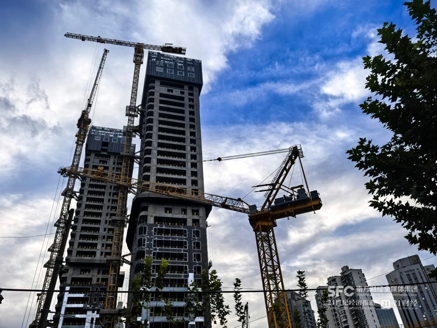 (在建中的金陵华庭两栋高层住宅,胡凯文/摄)