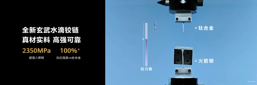 华为Mate X7搭载麒麟9030 PRO芯片,在材质和结构方面使用轻量化但强度极高的材料,将整机重量控制在约235克,折叠态厚度约9.5mm、展开态厚度4.5mm。为了保证耐用性和可靠性,铰链结构上,华为搭载了超可靠折叠玄武架构,包括第二代玄武钢化昆仑玻璃(典藏版)、玄武水滴铰链、超韧叠层内屏和机翼铝中框,协同后更加抗水、抗弯折、抗冲击、抗跌落。