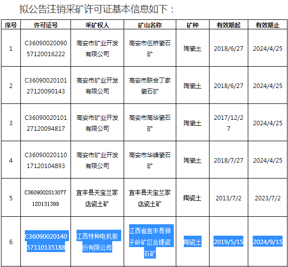 至于狮子岭矿区含锂瓷石矿接下来会否注销,则仍需以宜春市自然资源局的最终公示为准。