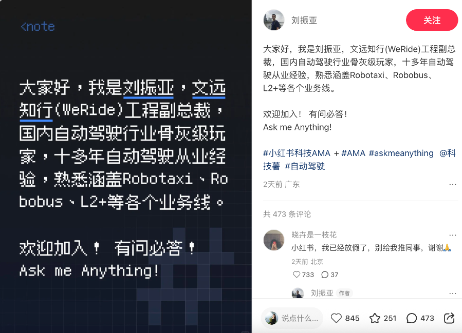 在国内,这一趋势热潮,始于小红书社区里一位AI圈知名教授许华哲的自发产出的笔记。作为清华大学交叉信息研究院助理教授,他在社区发起了一条AMA,许多学生涌入评论区,就论文、就业和前沿技术展开提问。
