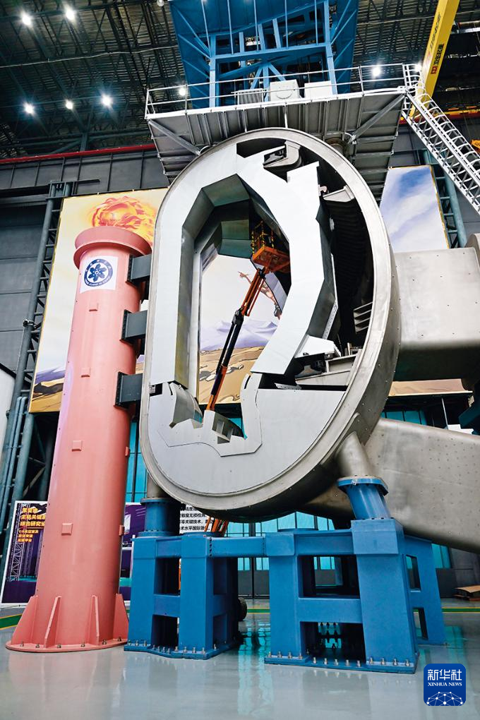 聚变堆主机关键系统综合研究设施“夸父”(CRAFT)八分之一真空室,偏滤器安装在真空室内部(2025年10月13日摄) 周牧摄/本刊 中国路径:“三位一体”生态系统