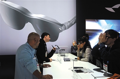 图为2026美国拉斯维加斯消费电子展上,参观者在体验智能眼镜。 新华社发(曾慧摄)