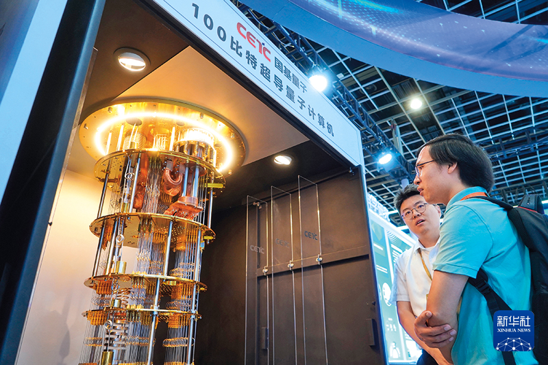 在南京举办的 2025 江苏产学研合作对接大会上,工作人员向游客讲解 100 比特超导量子计算机(2025年9月11日摄) 新华社发(刘臻睿摄) 多国将量子计算上升为国家战略